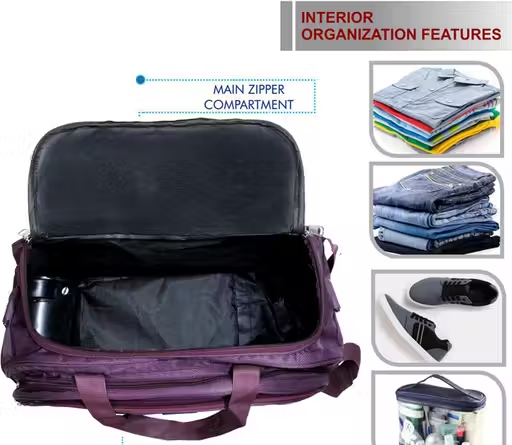 The spacious main compartment provides ample room to store clothes, shoes, travel essentials, and accessories. It features sturdy handles and an adjustable shoulder strap for comfortable carrying.