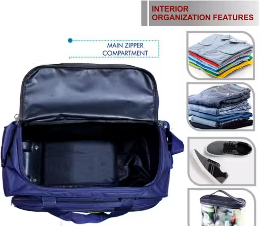 The spacious main compartment provides ample room to store clothes, shoes, travel essentials, and accessories. It features sturdy handles and an adjustable shoulder strap for comfortable carrying.