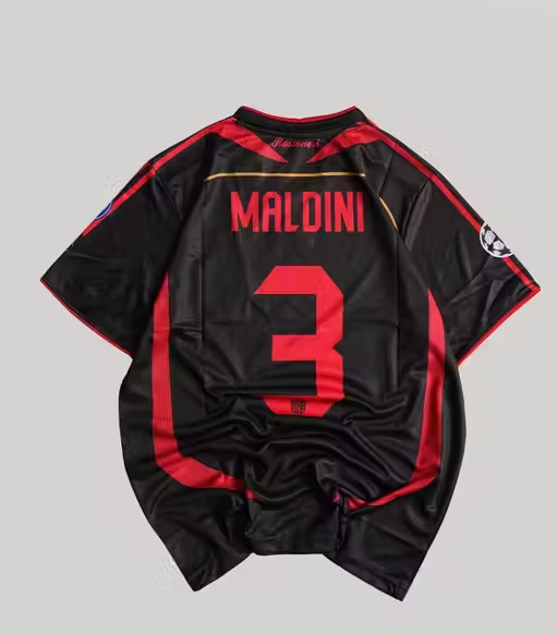 Classic AC Milan retro black jersey inspired by legendary defender Maldini #3. Designed with a premium look, this jersey represents leadership and timeless football style.