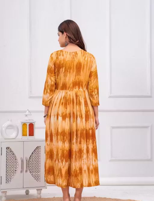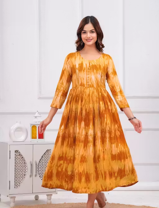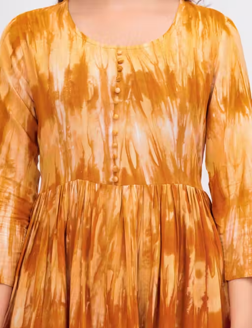 The Anarkali silhouette provides a flowy and flattering fit, while the three-quarter sleeves add a balanced and modern touch. The dyed/washed pattern gives it a unique and trendy appearance suitable for various occasions.
