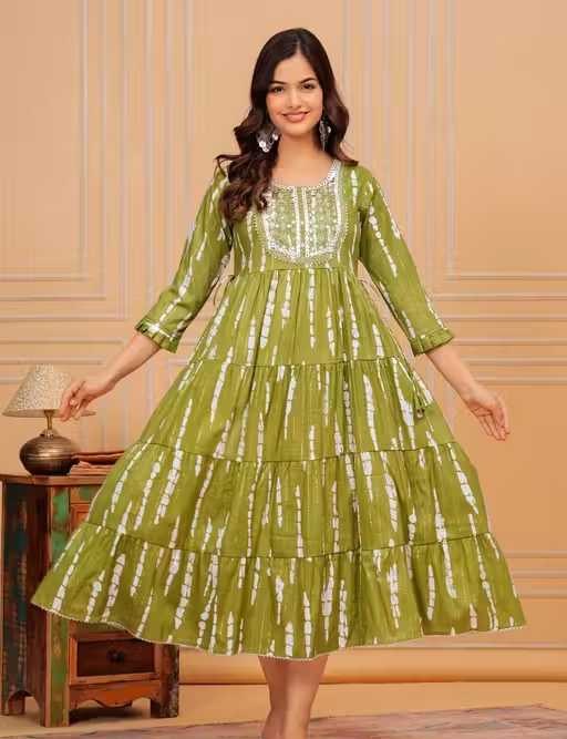 This elegant embroidered Anarkali kurti is designed to give a graceful and stylish look. Made from soft rayon fabric, it offers a comfortable and breathable feel for all-day wear.