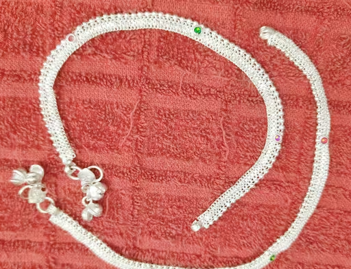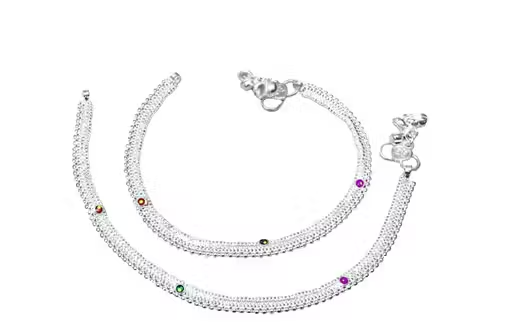 The set features chain-style anklets decorated with artificial stones and bead detailing that enhance the beauty of the jewellery. Its traditional design makes it perfect for both festive and casual wear.