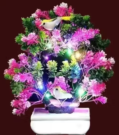 Name: Artificial bonsai plant 2 sparrow with led light pot for office MULTICOLOUR