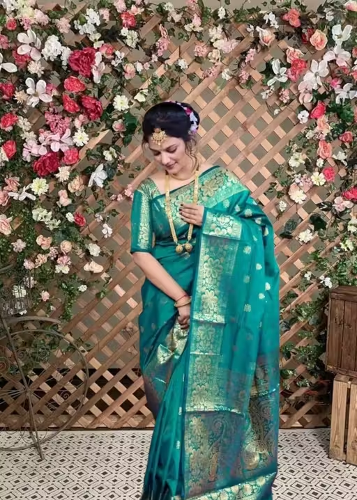 Kanjeevaram Silk Green Jacquard Saree with Blouse