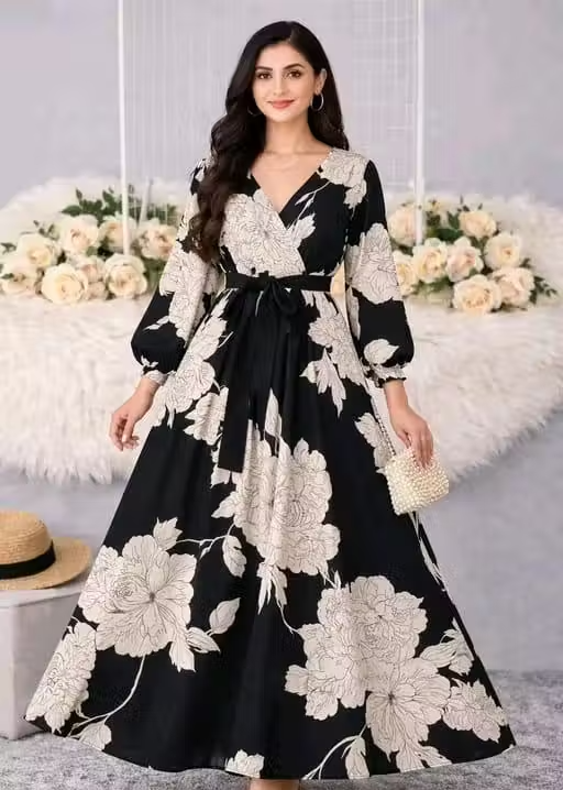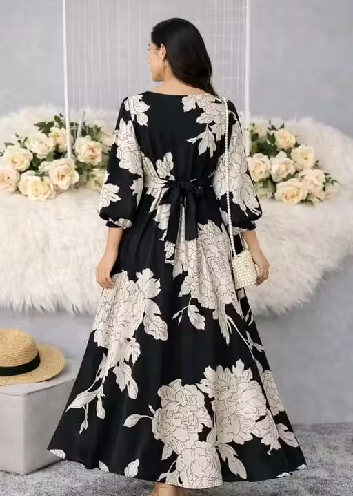 This gown features a trendy printed design with a flattering silhouette, making it perfect for parties, evening outings, and special occasions. Its versatile style also works as a chic maxi dress, giving you both comfort and fashion in one outfit.