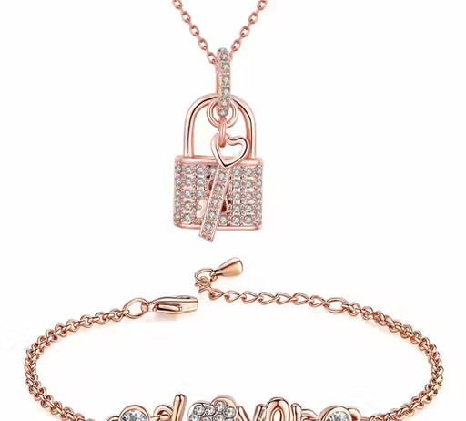 This elegant bracelet combo includes two stylish adjustable bracelets designed for girls and women. Crafted from durable alloy with a rose gold plated finish, these bracelets offer a beautiful shine and modern appearance.
