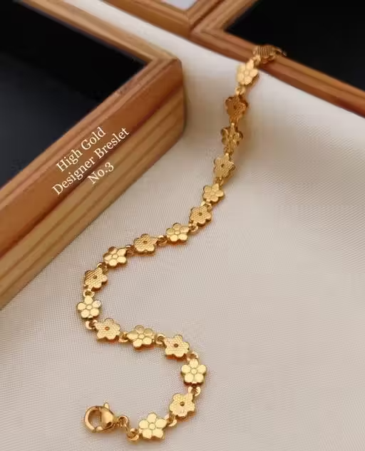 This stylish gold-plated link bracelet is designed to add elegance and charm to your jewellery collection. Crafted from durable brass and copper, it features a smooth finish and attractive shine.