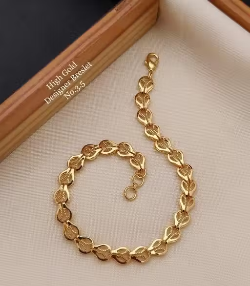 This stylish gold-plated link bracelet is designed to add elegance and charm to your jewellery collection. Crafted from durable brass and copper, it features a smooth finish and attractive shine.
