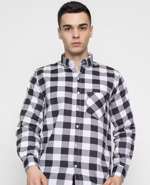 This stylish checked shirt is designed to give a smart and modern look. Made from cotton blend fabric, it offers a comfortable and breathable feel for all-day wear.