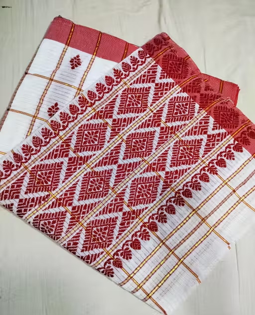 Assamese Mekhala Sador Cotton Silk Mekhala Chadar Only Chadar