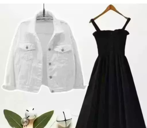 This stylish dress with jacket set is designed to give a modern and elegant look. Made from lightweight crepe fabric, it offers a soft and comfortable feel for all-day wear.