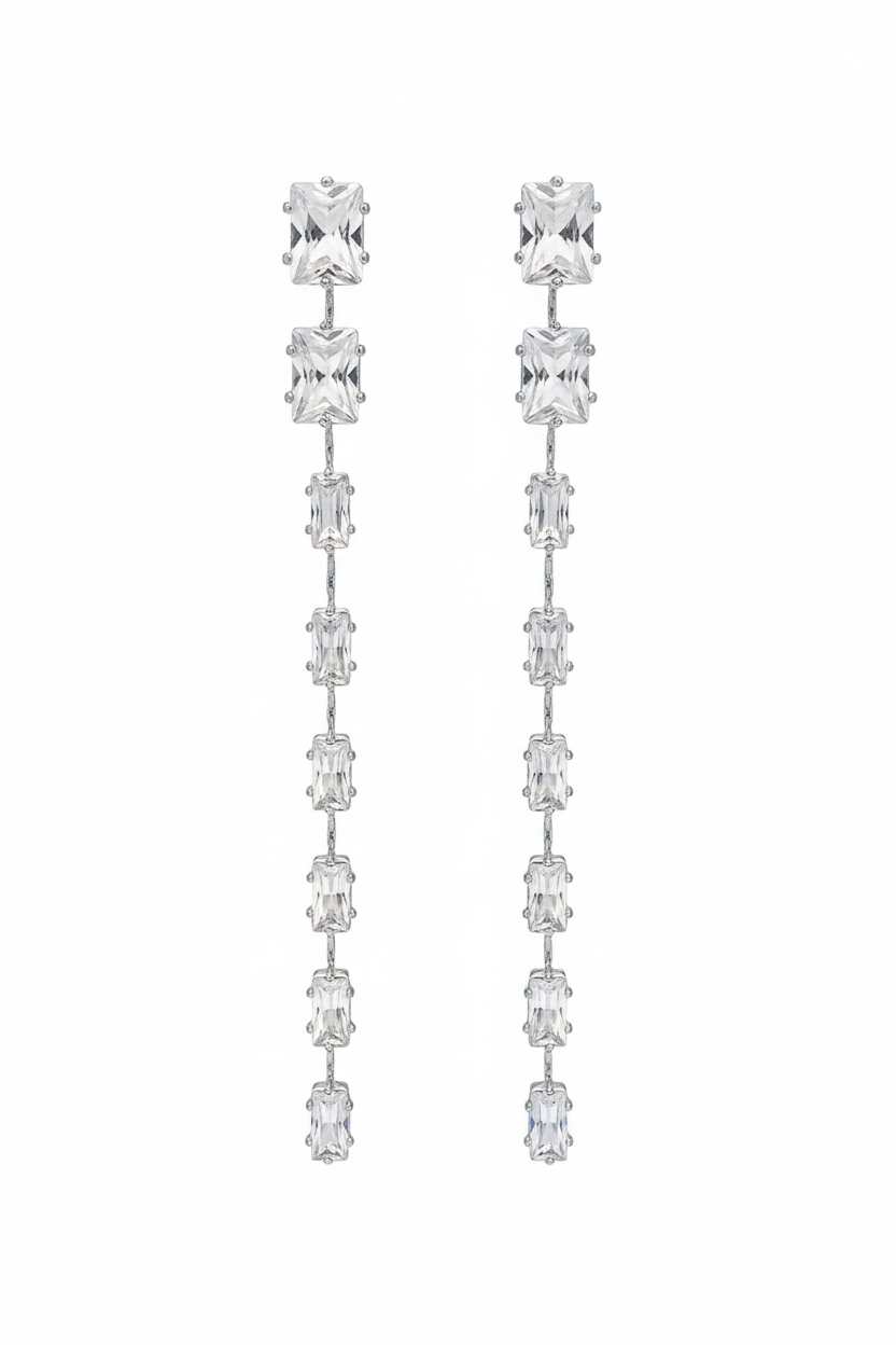 Add a touch of modern brilliance to your ensemble with these tiered crystal drop earrings. This collection offers two distinct styles: a bold, regal emerald drop for a pop of color, and a sophisticated linear crystal strand for a minimalist, high-fashion silhouette. Each pair is meticulously crafted to maximize light reflection, ensuring you shine at every special event.