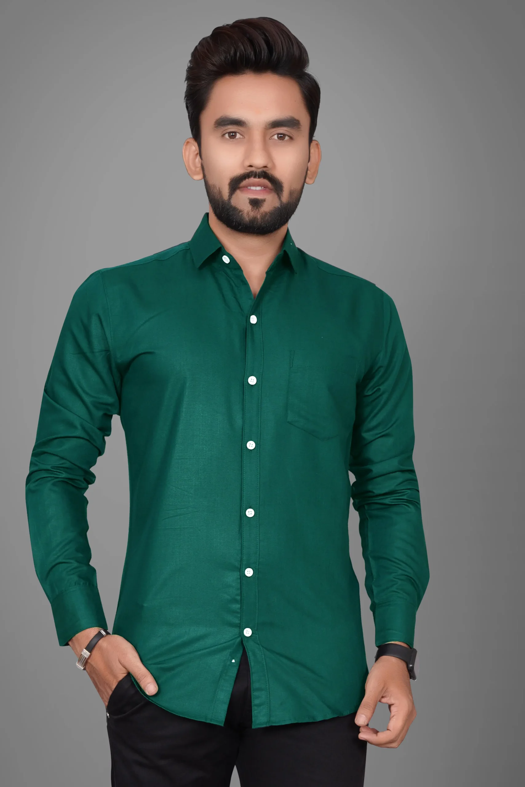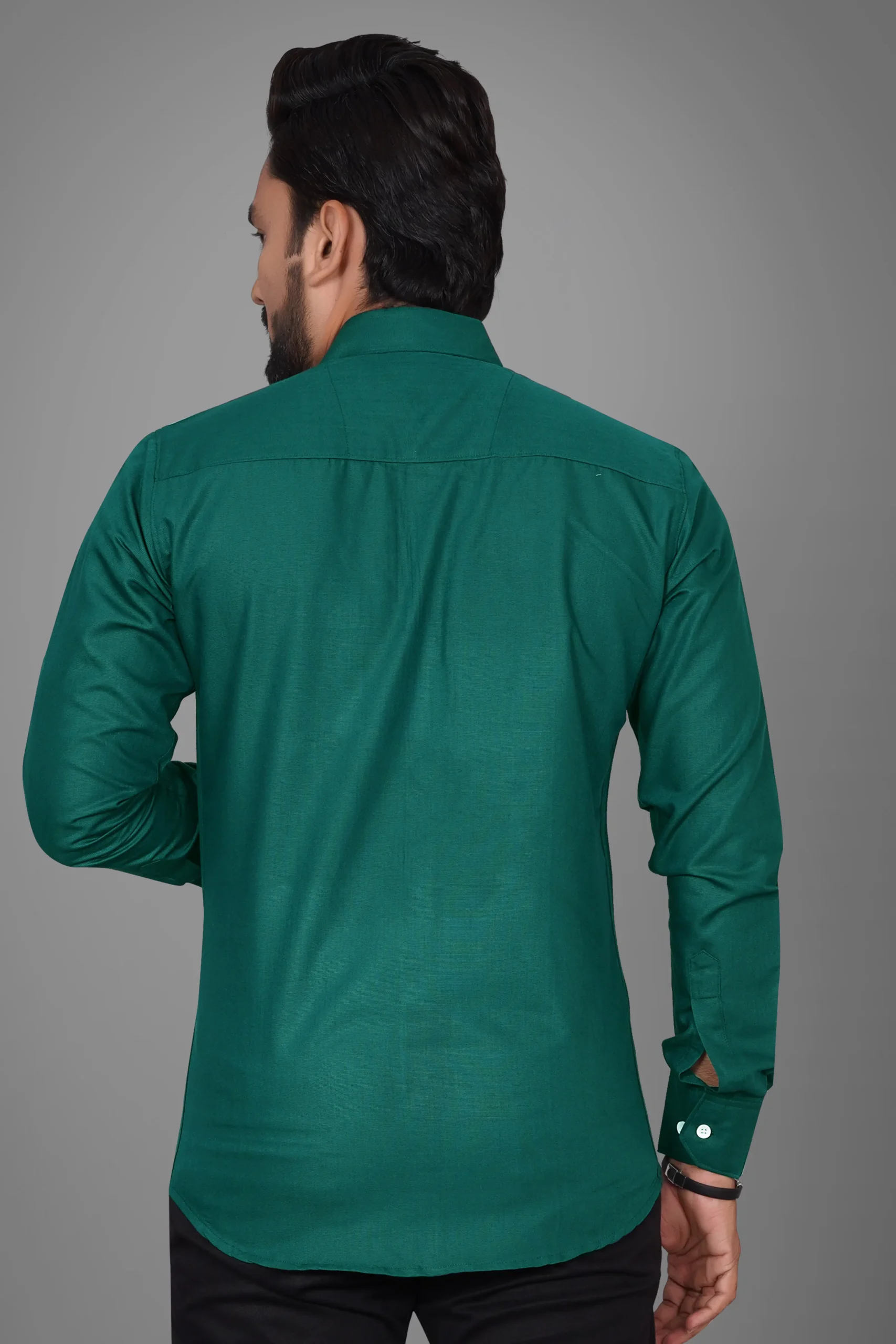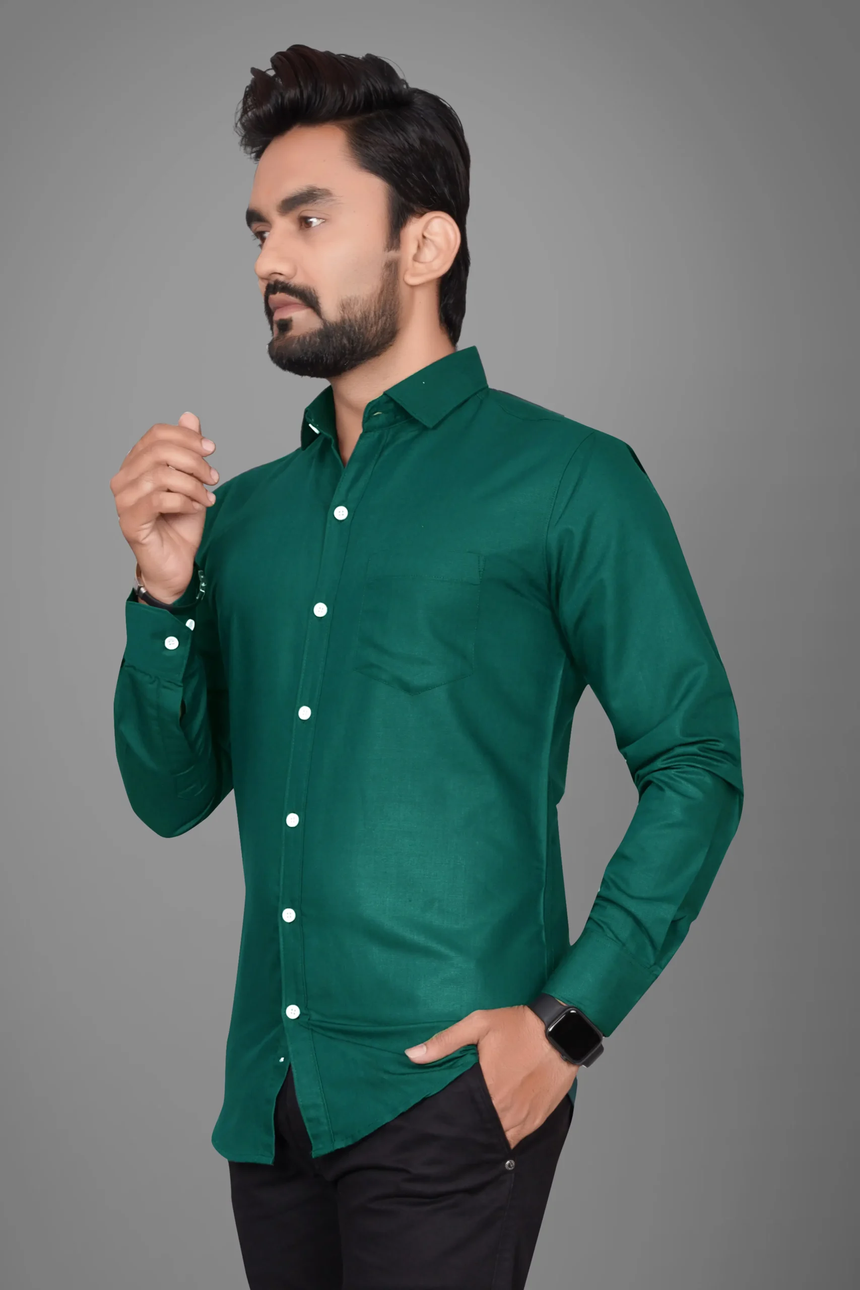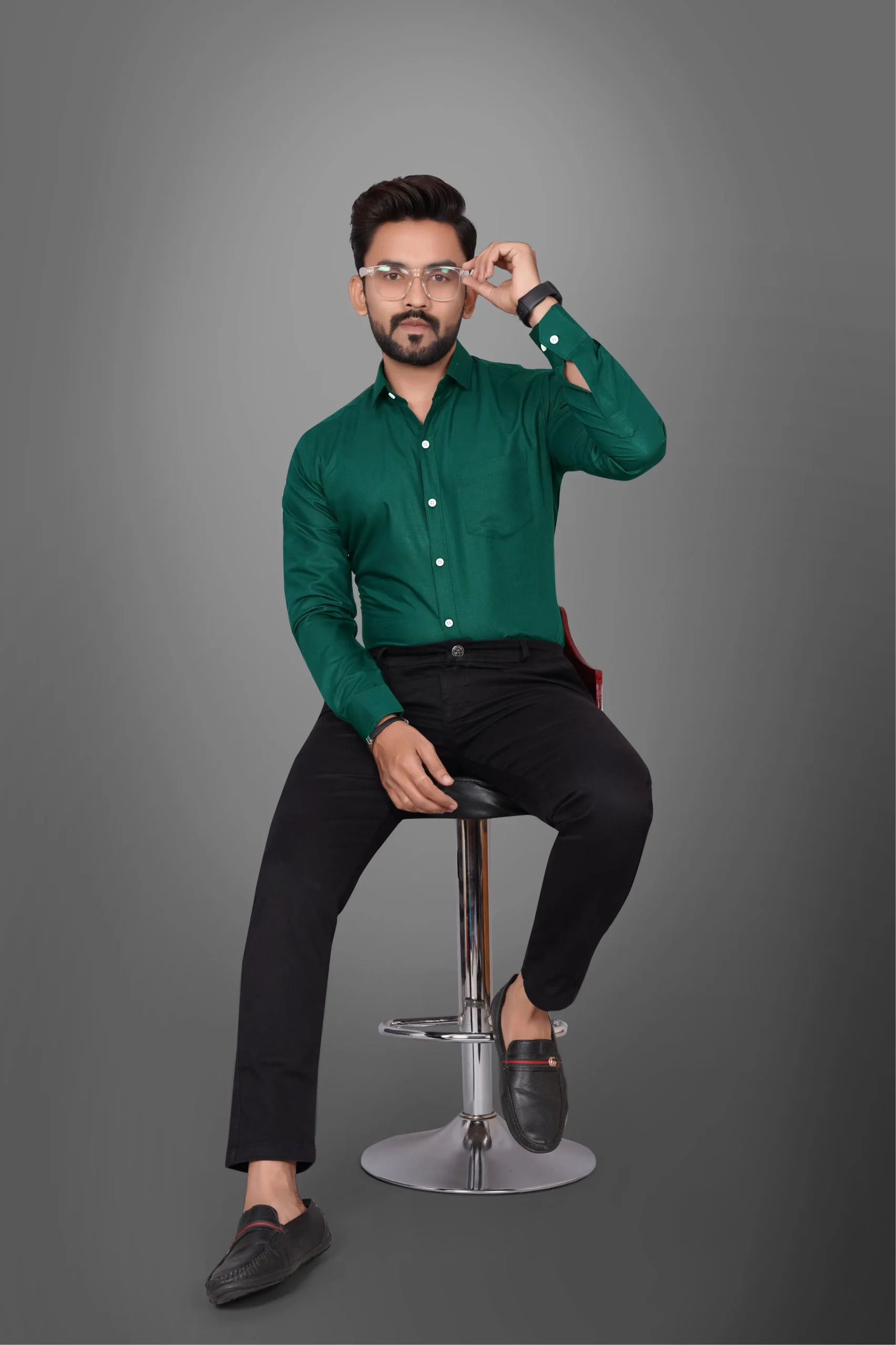Ye men’s solid dark green shirt premium quality fabric se bana hua hai jo rich, classy aur confident look deta hai. Deep green color aur clean solid design is shirt ko office wear, casual outings, evening events aur festive occasions ke liye perfect banata hai. Soft aur breathable material hone ki wajah se ye shirt poore din comfortable feel deta hai. Dark green shade jeans, black trousers ya chinos ke saath easily match ho jata hai aur aapke overall look ko stylish banata hai.