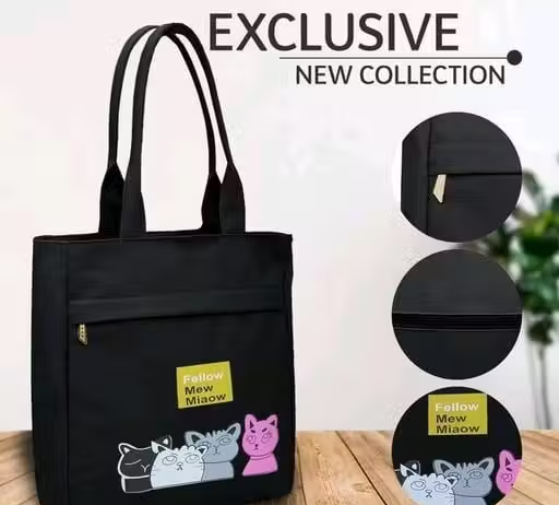 This cute and stylish tote bag features an attractive cat-themed print, making it a perfect choice for animal lovers and fashion enthusiasts. Compact yet spacious, it is ideal for carrying daily essentials during quick outings.