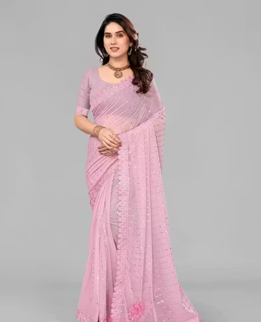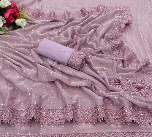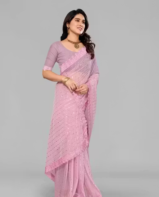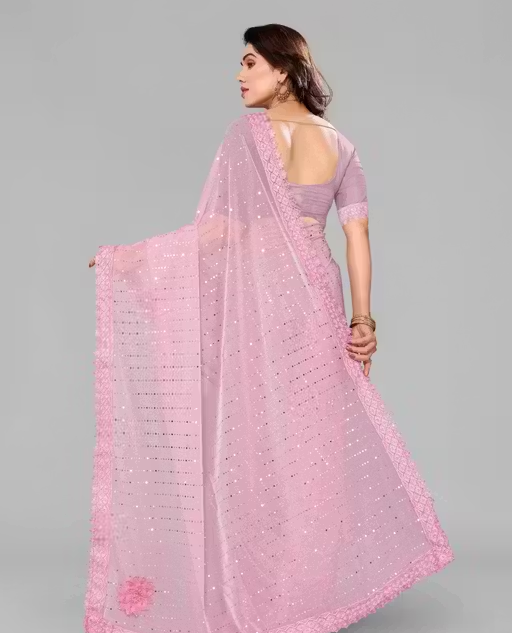 SHIMMER SAREE WITH MIRROR WORK AND CHEMICAL LACE AND DIMOND HAND WORK