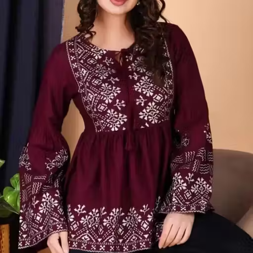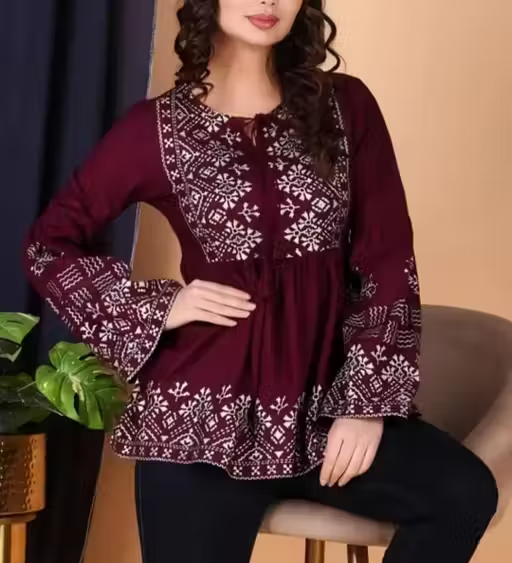 Add a stylish touch to your kid’s wardrobe with this trendy printed top. Made from soft rayon fabric, it offers a smooth feel, excellent comfort, and breathability for all-day wear. The long sleeves and attractive print design make it perfect for a modern and fashionable look.