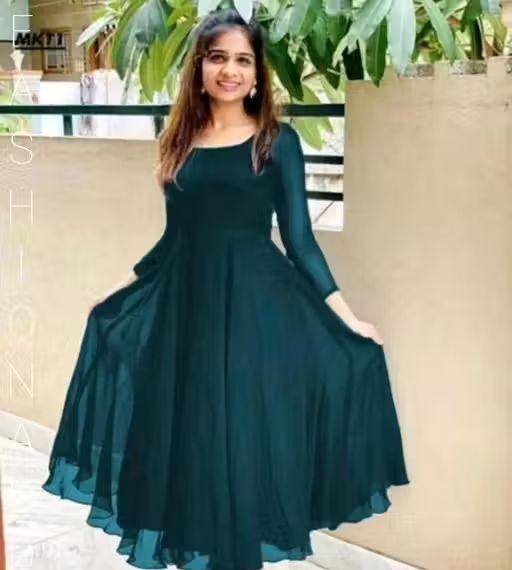 Step into elegance with this beautiful long flared Anarkali kurti, crafted from lightweight georgette fabric. Designed with a graceful flare, it gives you a stylish and flowy look perfect for special occasions.