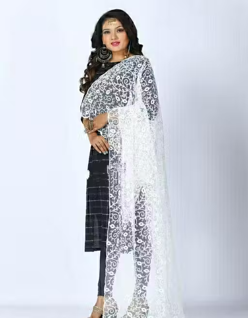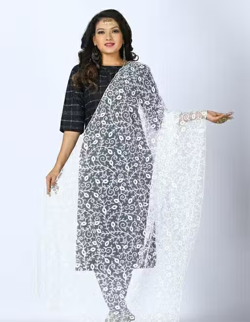 Enhance your ethnic look with this stylish and elegant dupatta, crafted from lightweight net fabric. Featuring beautiful embroidery, it adds a graceful and trendy touch to any outfit.