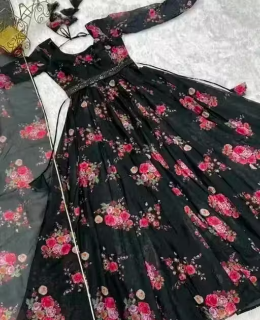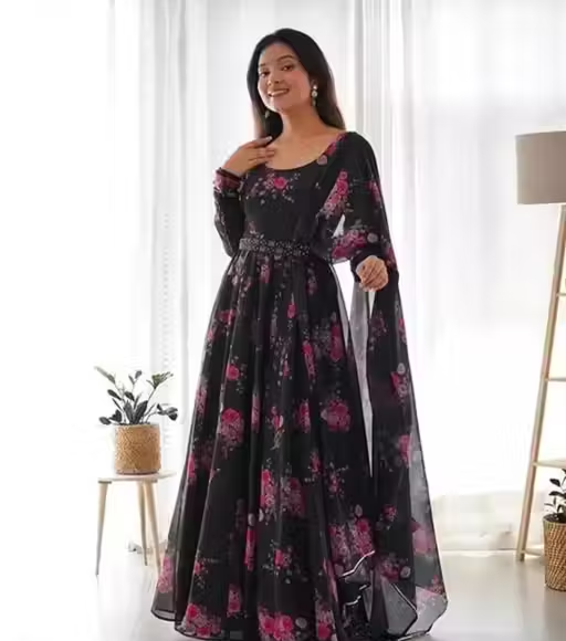 Step into elegance with this stylish floral print long kurti paired with a matching dupatta. Crafted from lightweight poly georgette fabric, this outfit offers a soft feel with a graceful drape. The long sleeves and vibrant print add a modern ethnic touch, making it perfect for both casual and festive occasions.