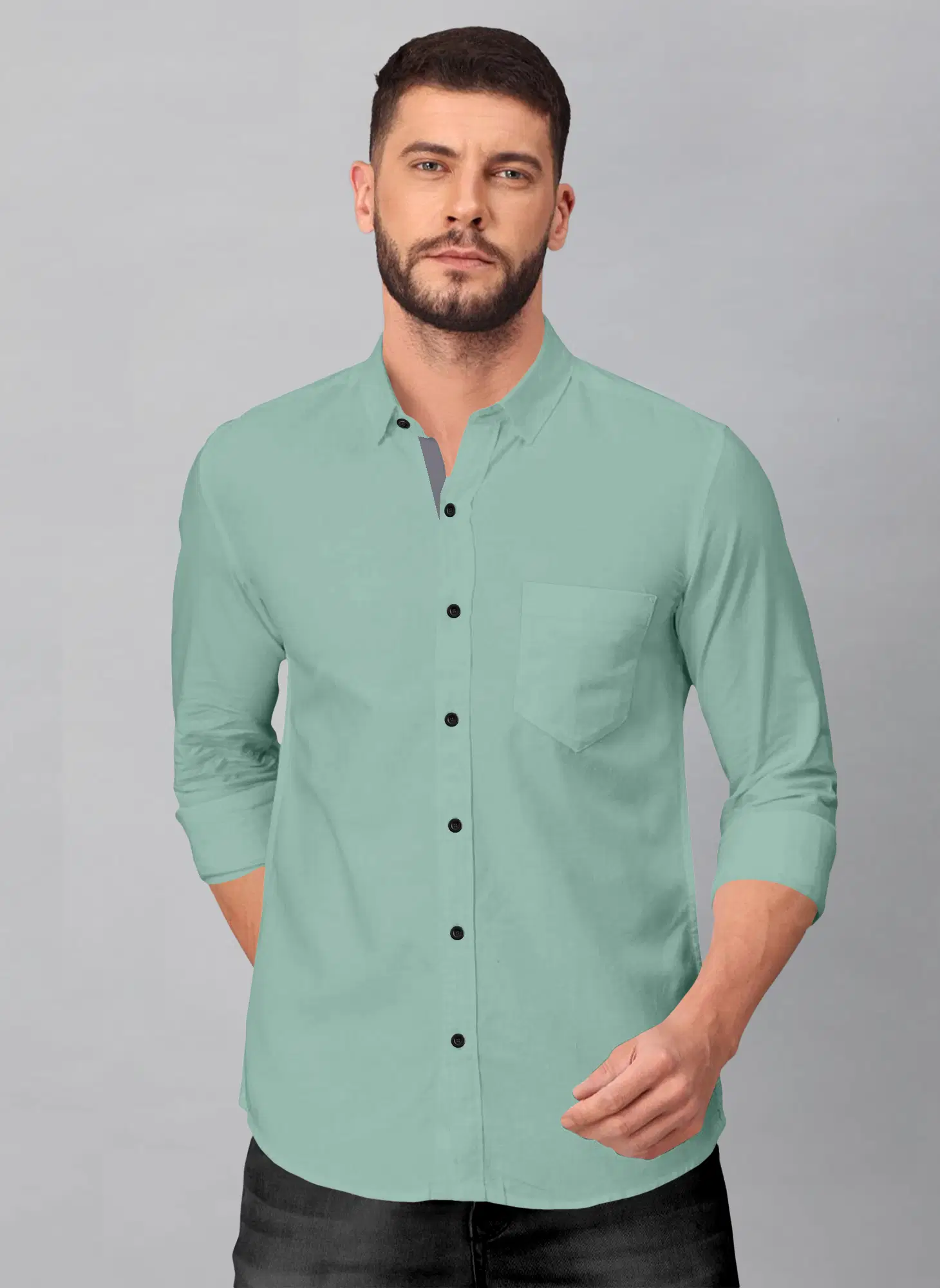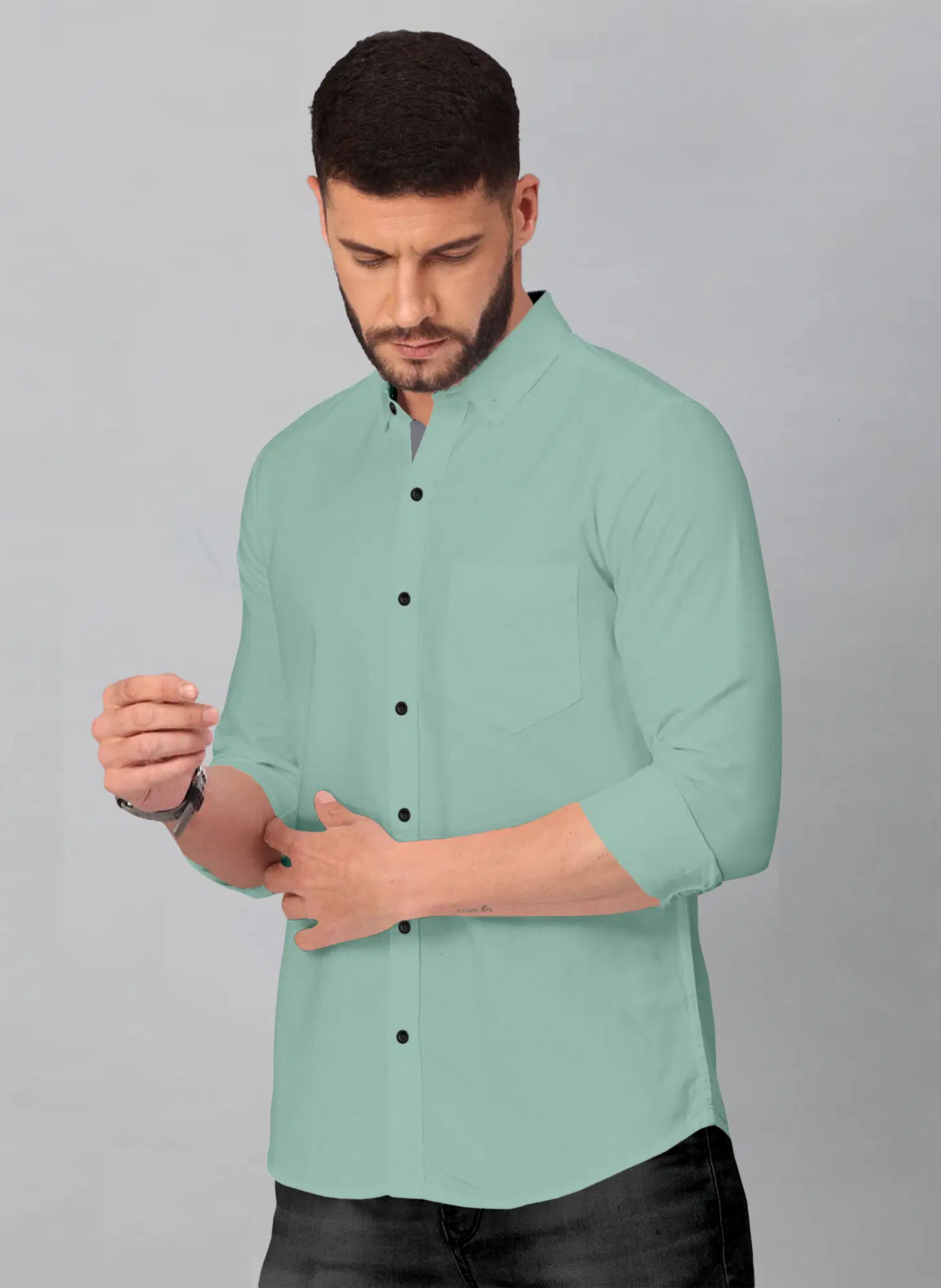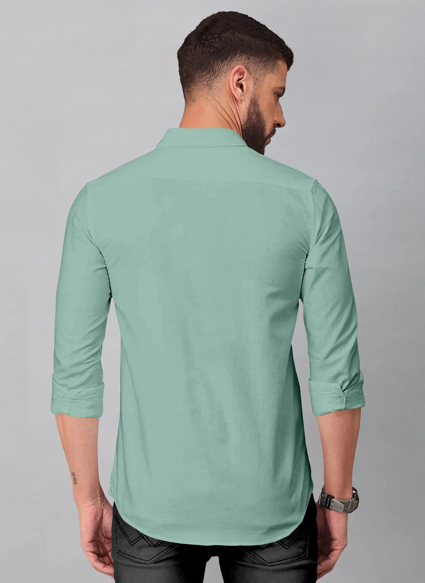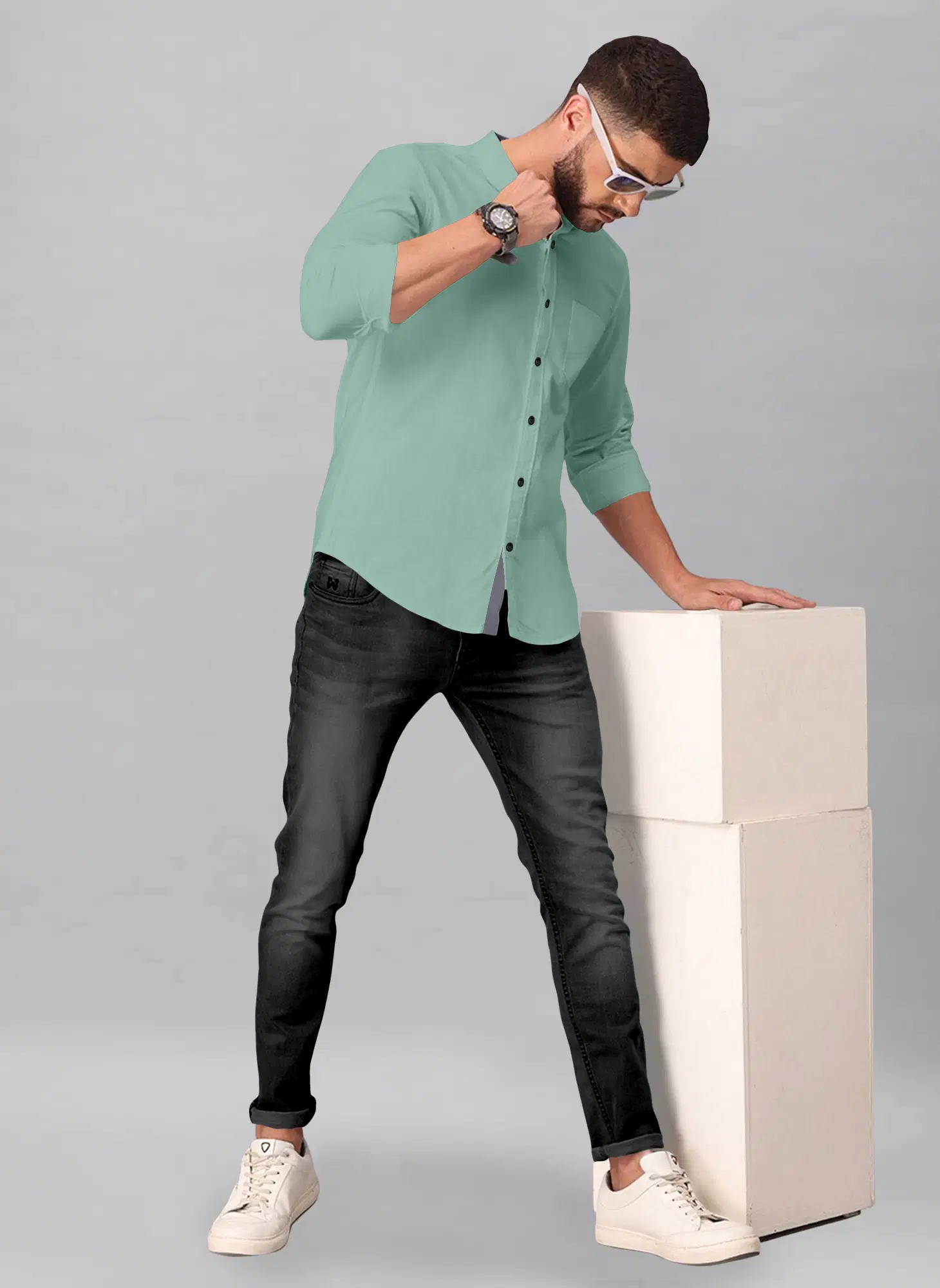 Ye men’s solid mint green Mandarin collar shirt fresh, classy aur modern look deta hai. Light mint green color summer-friendly hai aur day-long comfort ke saath smart appearance banaye rakhta hai. Mandarin (Chinese) collar isse trendy touch deta hai, jabki soft aur breathable fabric casual wear, office wear aur festive occasions ke liye perfect hai. Jeans, chinos ya trousers ke saath easily pair ho jata hai.