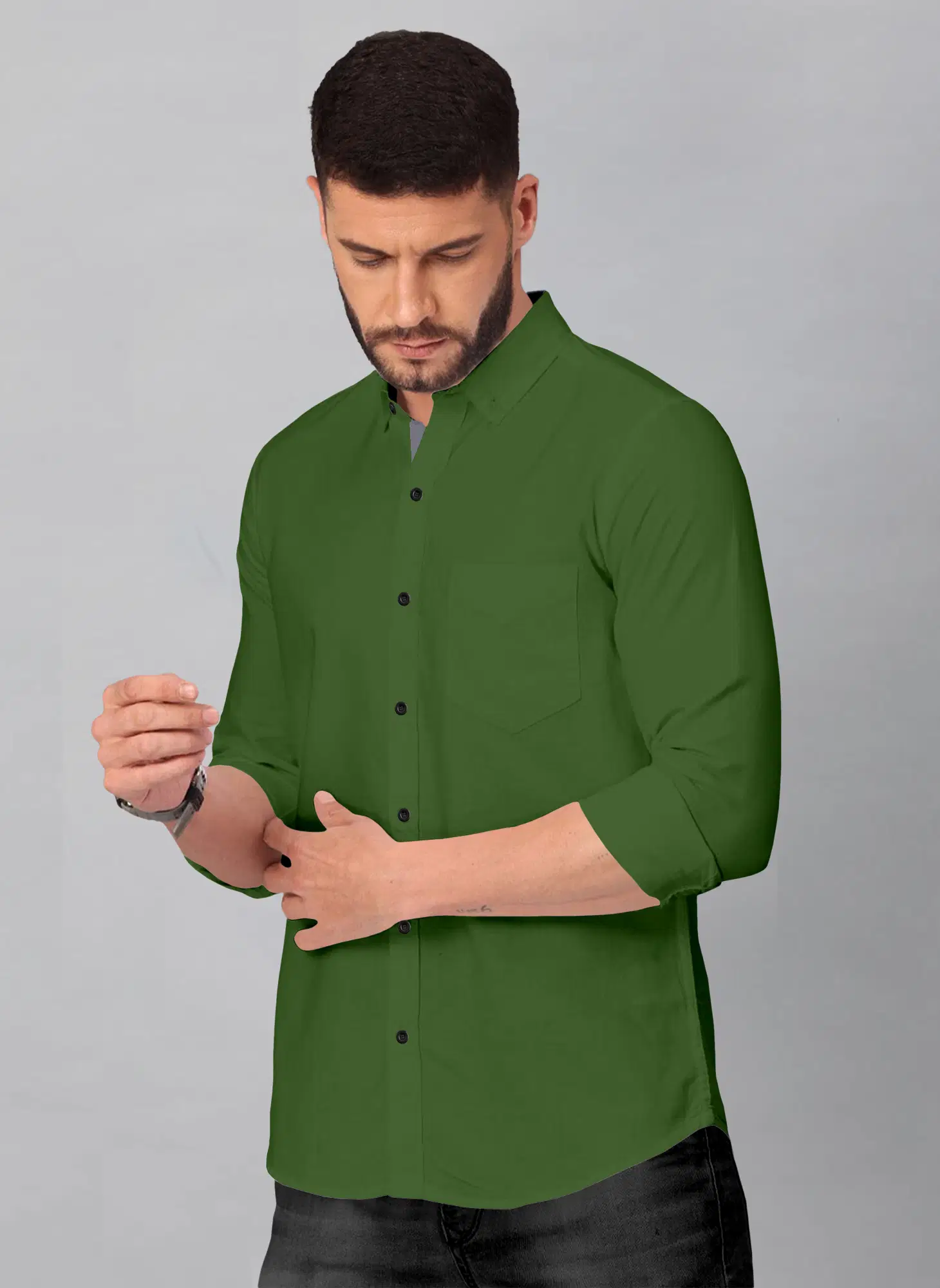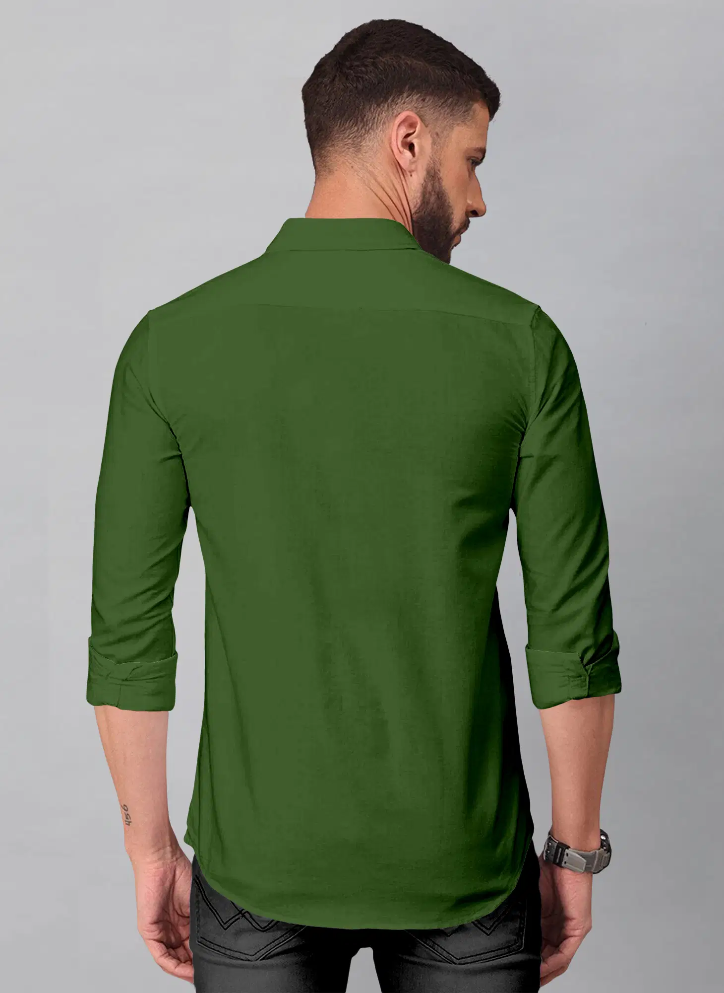Ye men’s solid olive green Mandarin collar shirt ek classy aur modern look provide karta hai. Rich green color ke saath Chinese collar design is shirt ko premium aur trendy banata hai. Soft aur breathable fabric din bhar comfort deta hai, isliye ye shirt office wear, festive occasions, casual outings aur evening functions ke liye ideal hai. Jeans, chinos ya formal trousers ke saath easily style ki ja sakti hai.