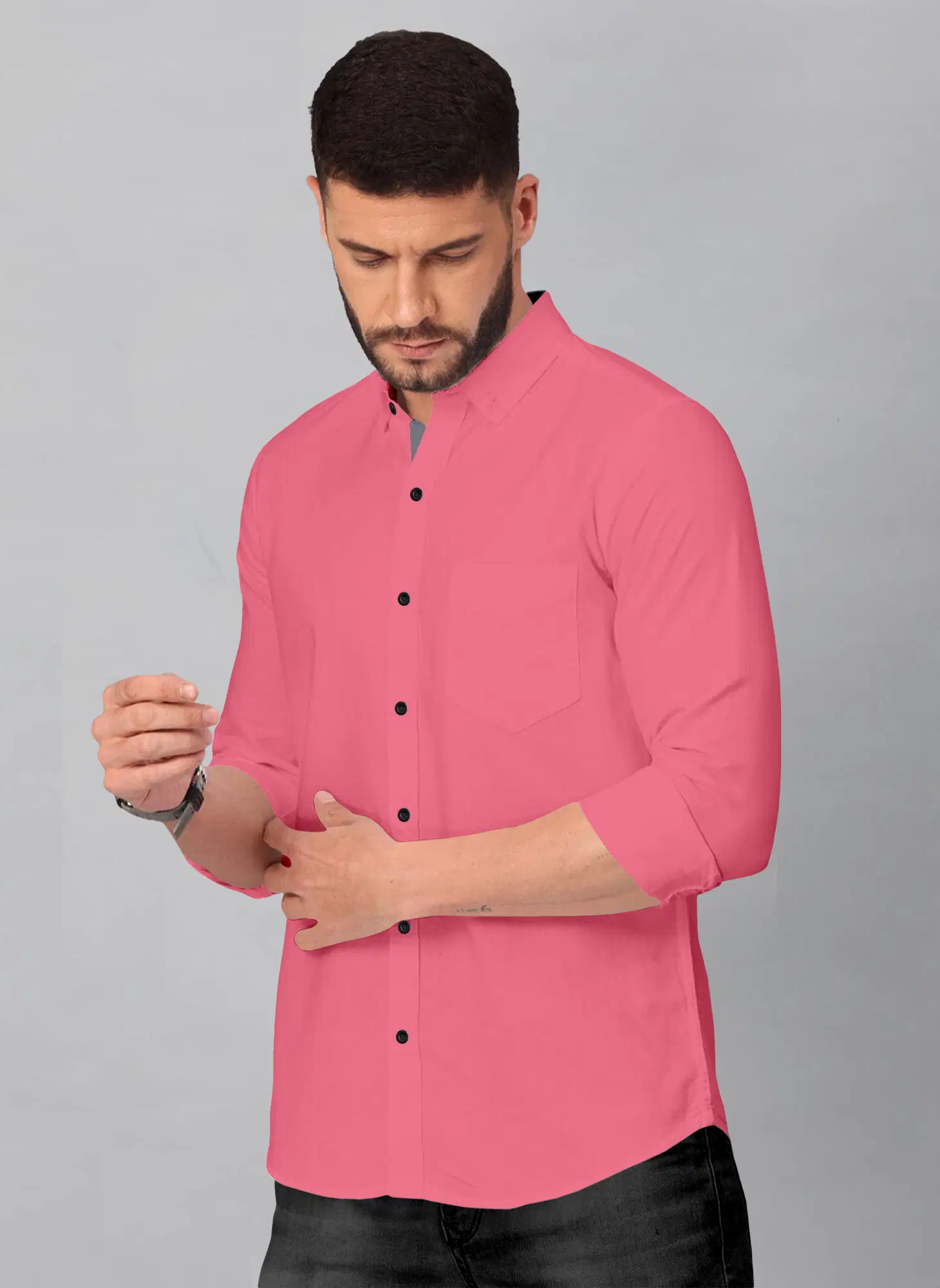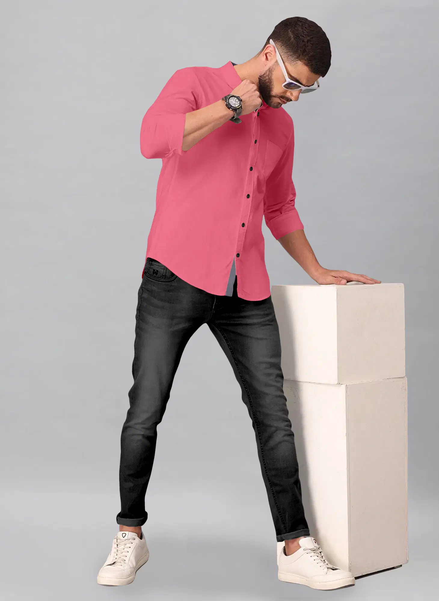 Ye men’s solid pink (rose shade) Mandarin collar shirt ek fresh aur stylish look deta hai. Modern Chinese collar design aur soft pastel pink colour is shirt ko classy aur trendy banata hai. Premium quality fabric se bana hua, ye shirt breathable aur skin-friendly hai, jo poore din comfort ensure karta hai. Casual wear, office use, festive occasions ya smart evening outings ke liye ye ek perfect wardrobe essential hai. Jeans, chinos ya formal trousers ke saath effortlessly match hota hai.