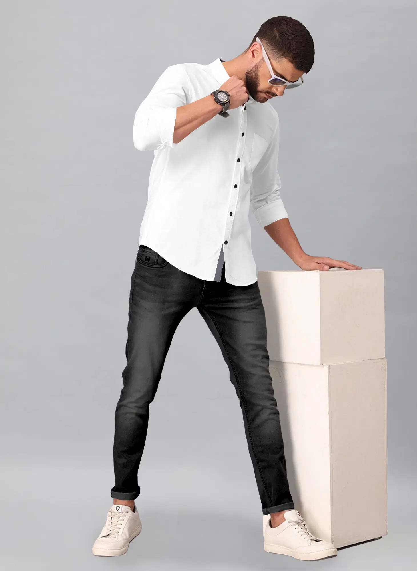 Ye men’s solid white Mandarin collar shirt ek timeless aur premium look deta hai. Clean white colour ke saath modern Chinese collar design is shirt ko elegant aur versatile banata hai. High-quality breathable fabric se bana hua, ye shirt din bhar comfort provide karta hai aur har season ke liye suitable hai. Office wear, festive occasions, casual outings ya formal events — har jagah ye shirt ek perfect choice hai. Jeans, chinos ya formal trousers ke saath effortlessly style hota hai.
