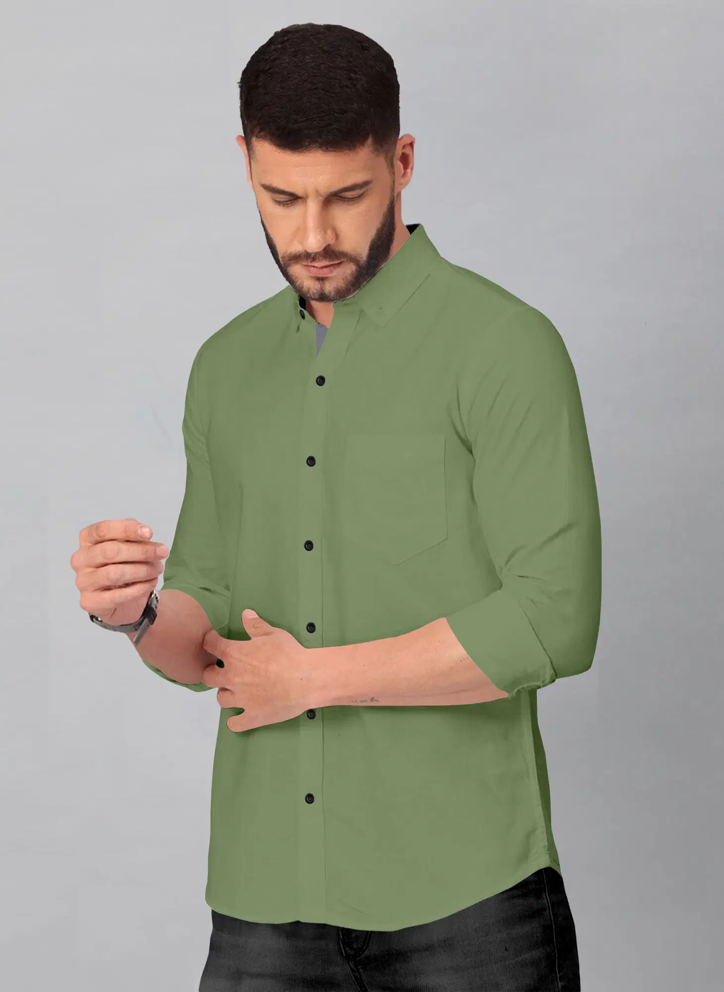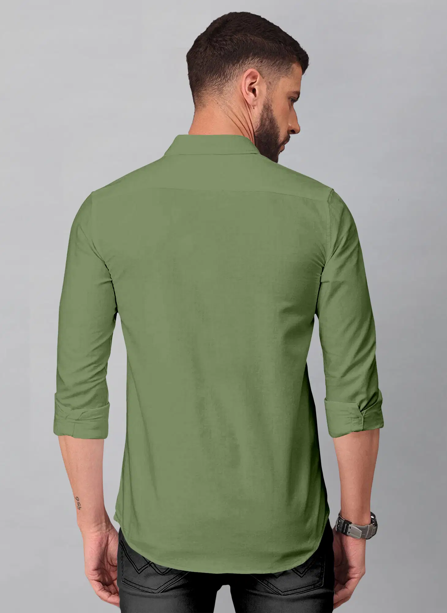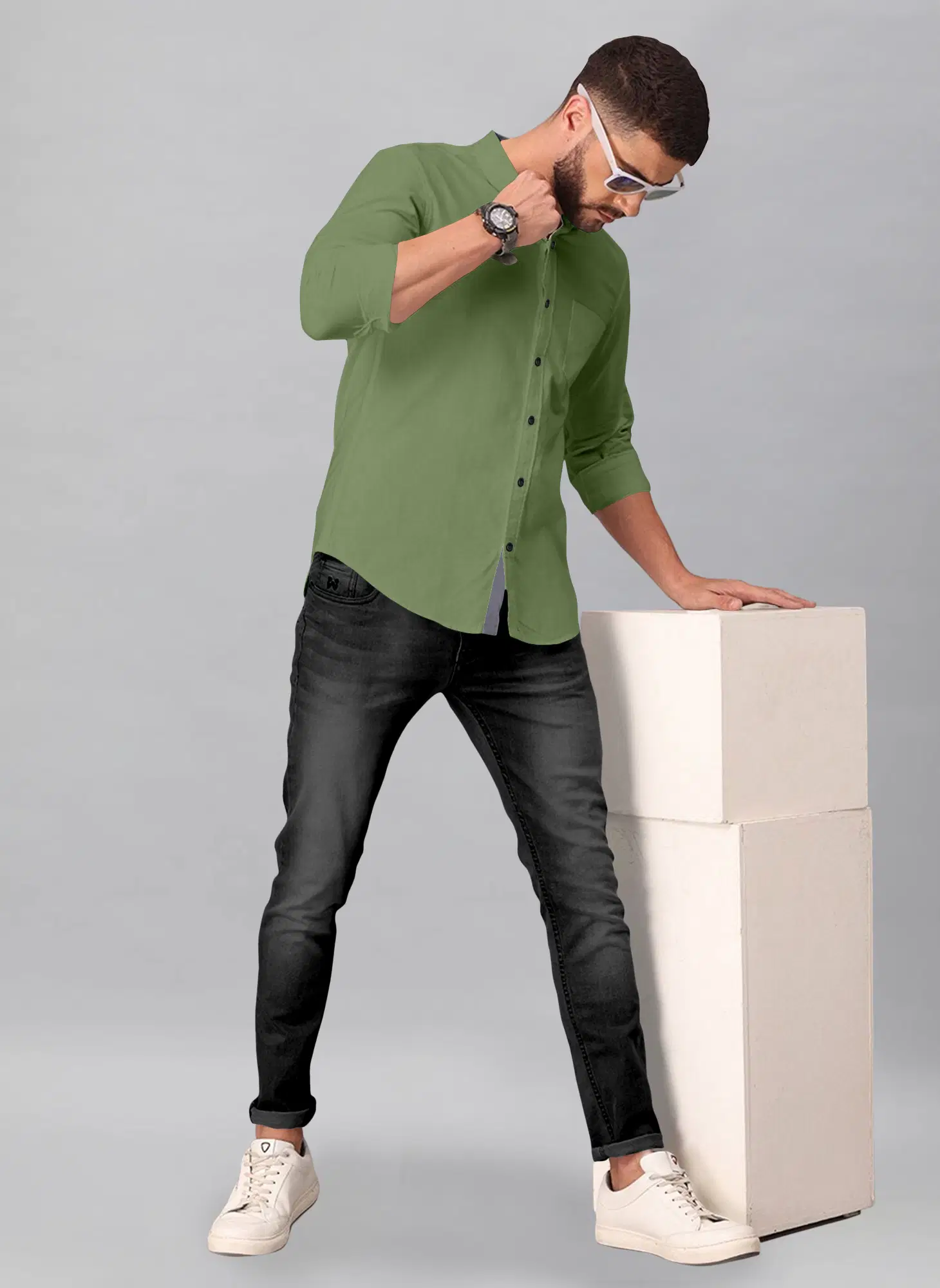 Ye menβs solid olive green Mandarin collar shirt ek modern, earthy aur premium look deta hai. Olive green shade subtle yet stylish hoti hai, jo casual wear, office wear aur semi-formal occasions ke liye perfect hai. Mandarin (Chinese) collar is shirt ko contemporary touch deta hai, jabki soft aur breathable fabric din bhar comfort provide karta hai. Jeans, chinos ya trousers ke saath easily pair ho jata hai.