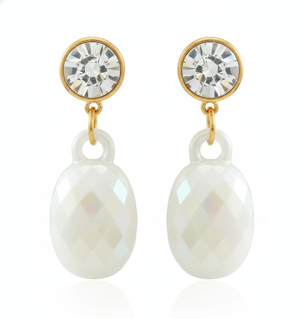 • Shiny crystal stud ke saath classy white oval drop design