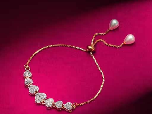 The bracelet is decorated with artificial stones that enhance its sparkle and stylish design. Its bangle-style pattern gives a fashionable and graceful touch suitable for various occasions.