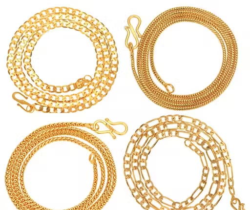 This elegant set includes 4 gold-plated fancy chain necklaces designed to add style and charm to your jewellery collection. Crafted from durable brass with a gold-plated finish, these chains offer a bright shine and attractive appearance.