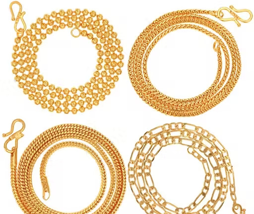 This elegant set includes 4 gold-plated fancy chain necklaces designed to add style and charm to your jewellery collection. Crafted from durable brass with a gold-plated finish, these chains offer a bright shine and attractive appearance.