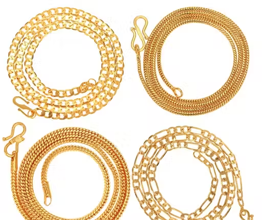 This elegant set includes 4 gold-plated fancy chain necklaces designed to add style and charm to your jewellery collection. Crafted from durable brass with a gold-plated finish, these chains offer a bright shine and attractive appearance.