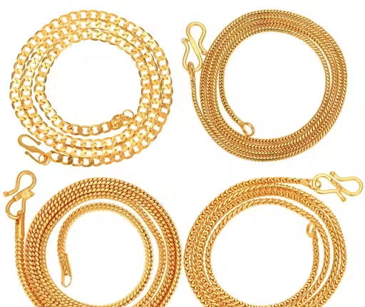 This elegant set includes 4 gold-plated fancy chain necklaces designed to add style and charm to your jewellery collection. Crafted from durable brass with a gold-plated finish, these chains offer a bright shine and attractive appearance.