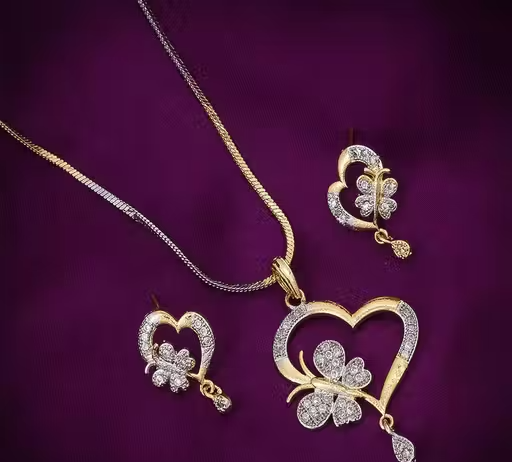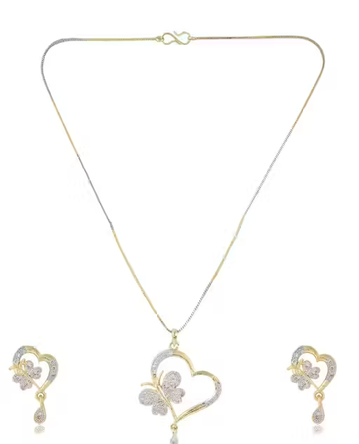 This elegant gold-plated jewellery set is designed to add sparkle and charm to your look. Decorated with beautiful American Diamond stones, the set offers a bright and attractive appearance suitable for various occasions.