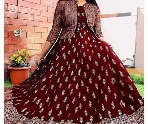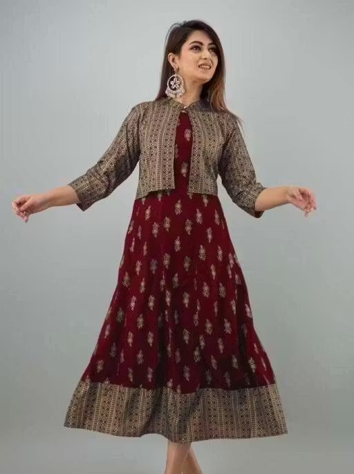 Upgrade your ethnic style with this elegant kurti paired with a stylish jacket. Made from soft and breathable rayon fabric, this outfit offers both comfort and a rich look. The zari woven pattern adds a touch of traditional elegance, making it perfect for festive occasions, parties, and special events.