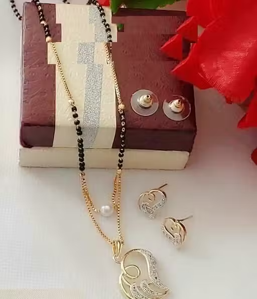 This stylish mangalsutra set is designed to add a modern and elegant touch to traditional jewellery. Crafted from durable alloy with a gold-plated finish, it offers a bright shine and attractive appearance.