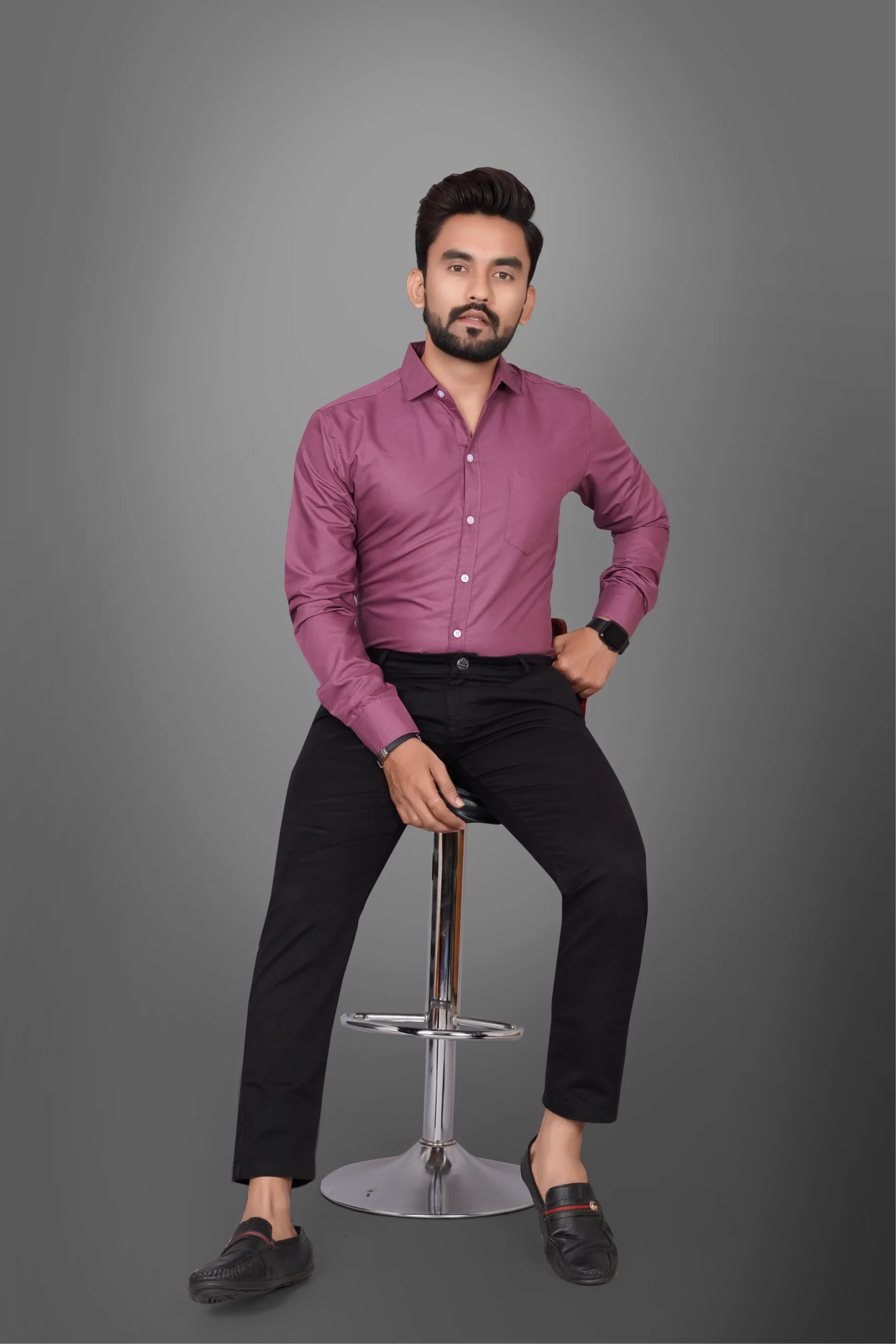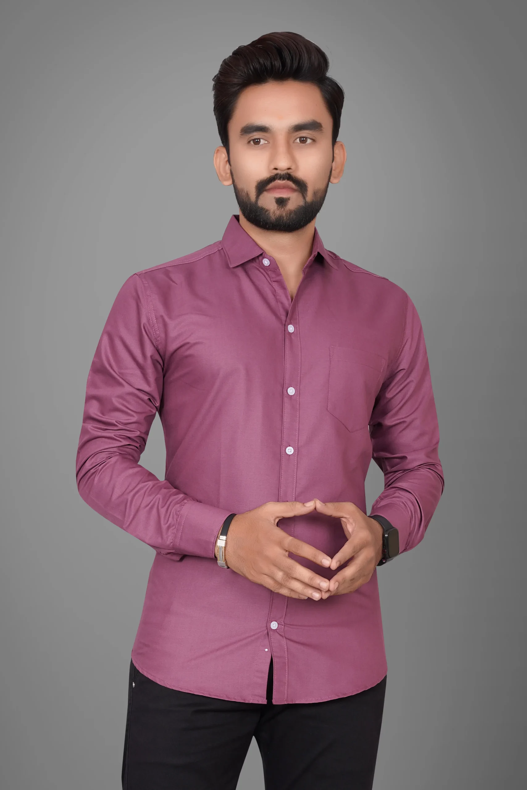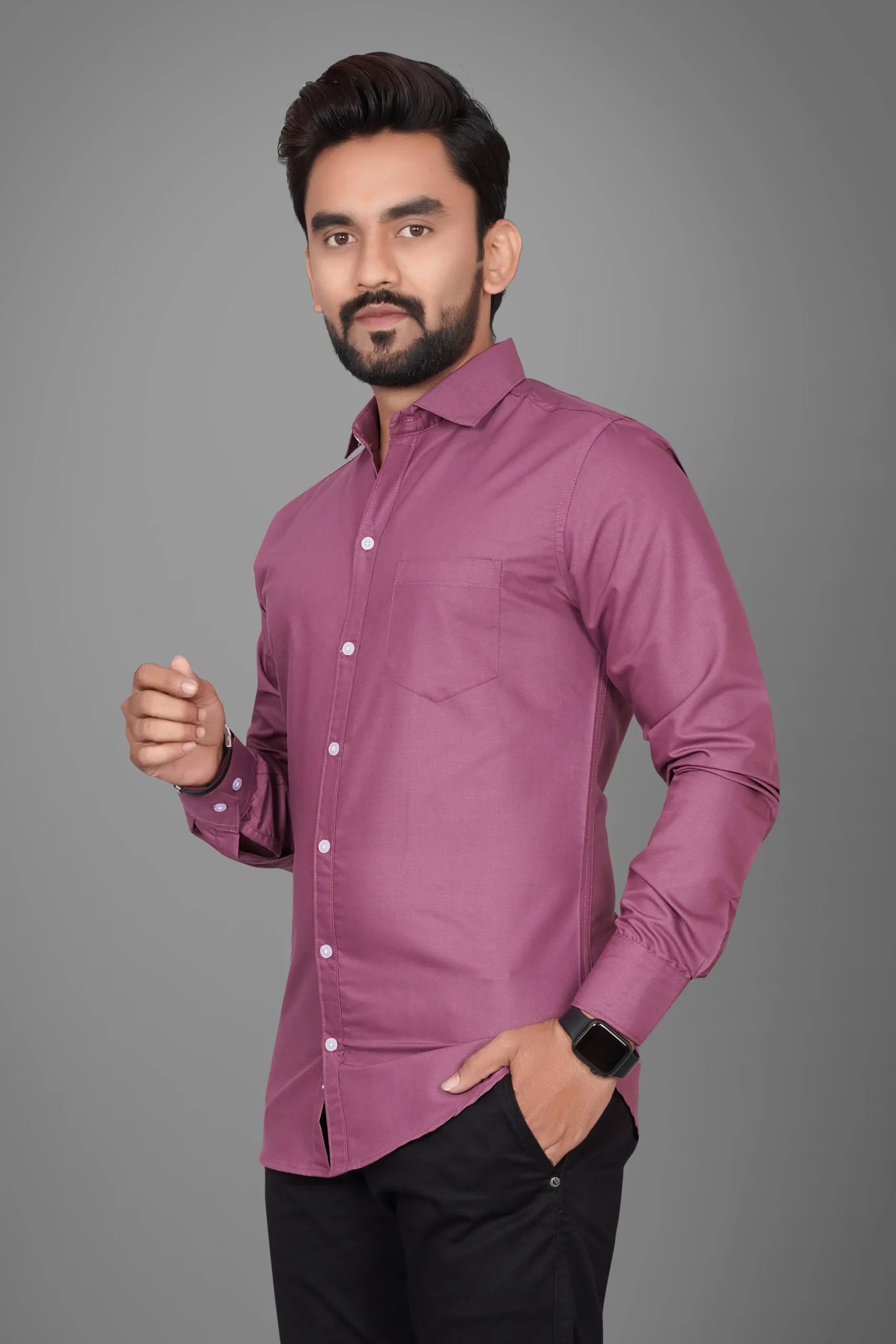 Ye men’s solid mauve purple shirt ek classy aur modern look provide karti hai. Soft aur breathable fabric ke saath banayi gayi ye shirt all-day comfort deti hai. Mauve/purple shade subtle yet premium finish deta hai, jo office wear, casual outings, parties aur festive occasions ke liye perfect choice banata hai. Clean solid design aur smart tailoring aapke overall look ko confident aur stylish banata hai.