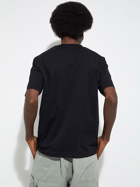 The regular fit offers a relaxed yet structured look, suitable for daily wear. Featuring short sleeves and a collarless round neck design, this T-shirt delivers a clean, modern appearance that pairs perfectly with jeans, trousers, or shorts.