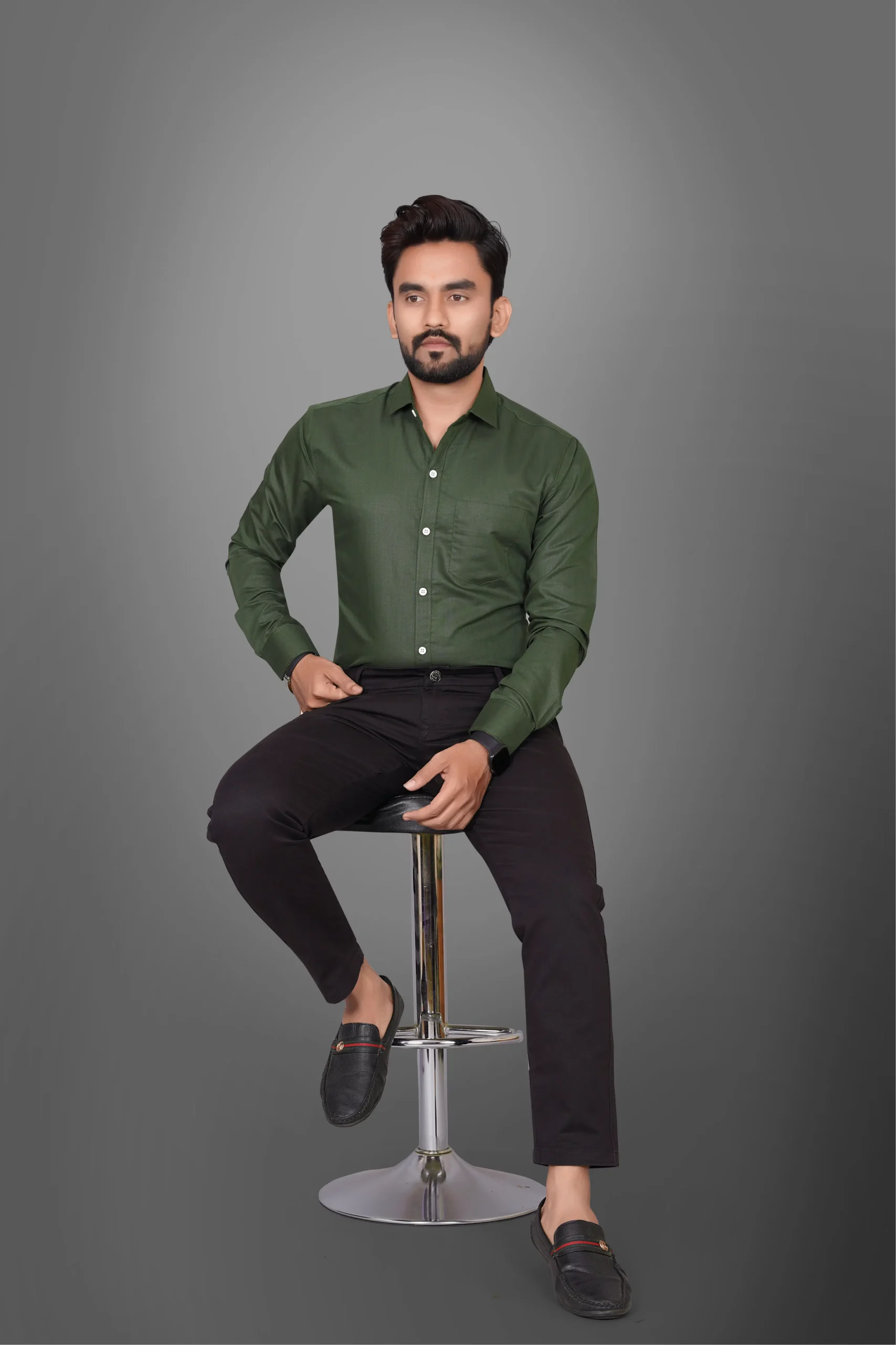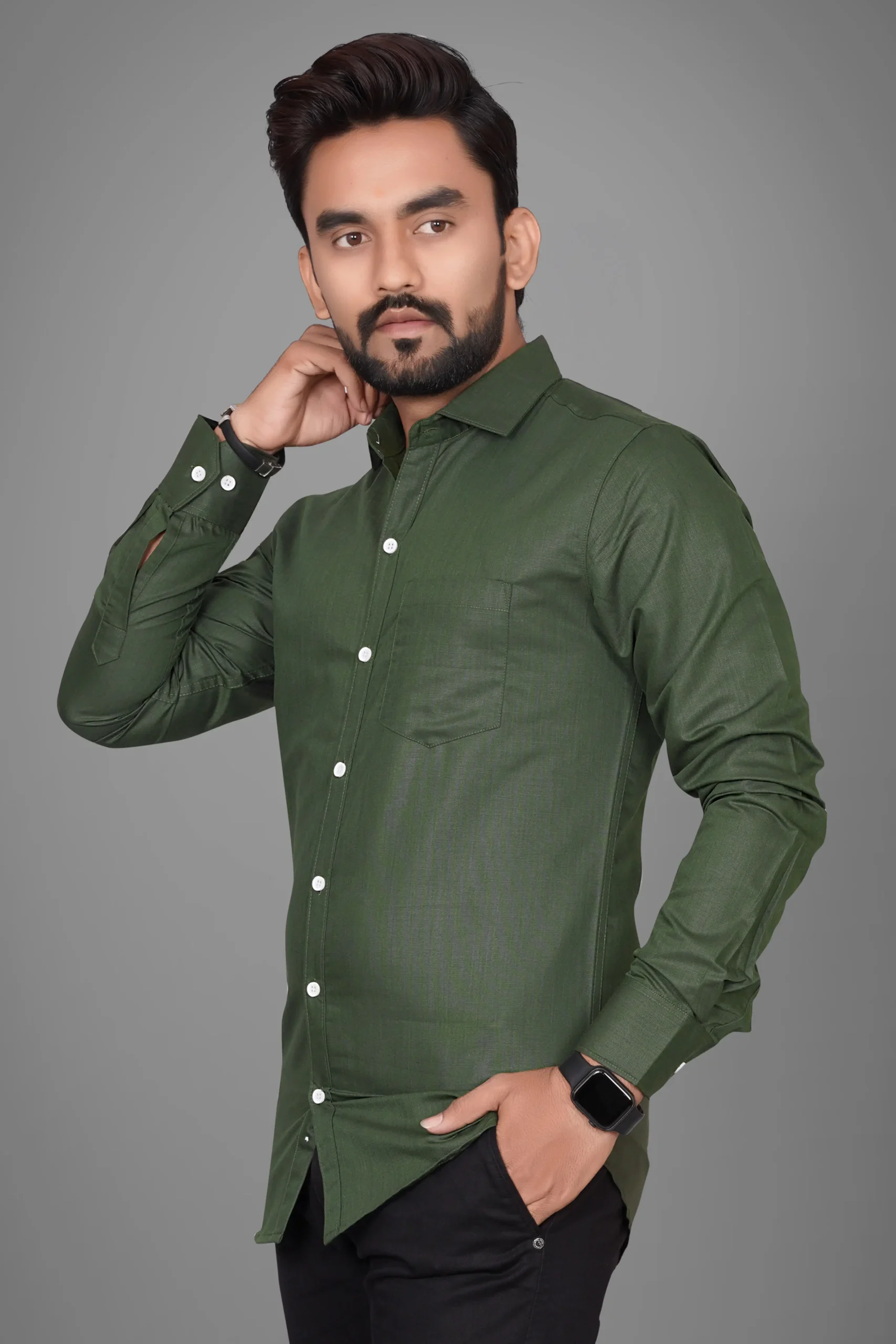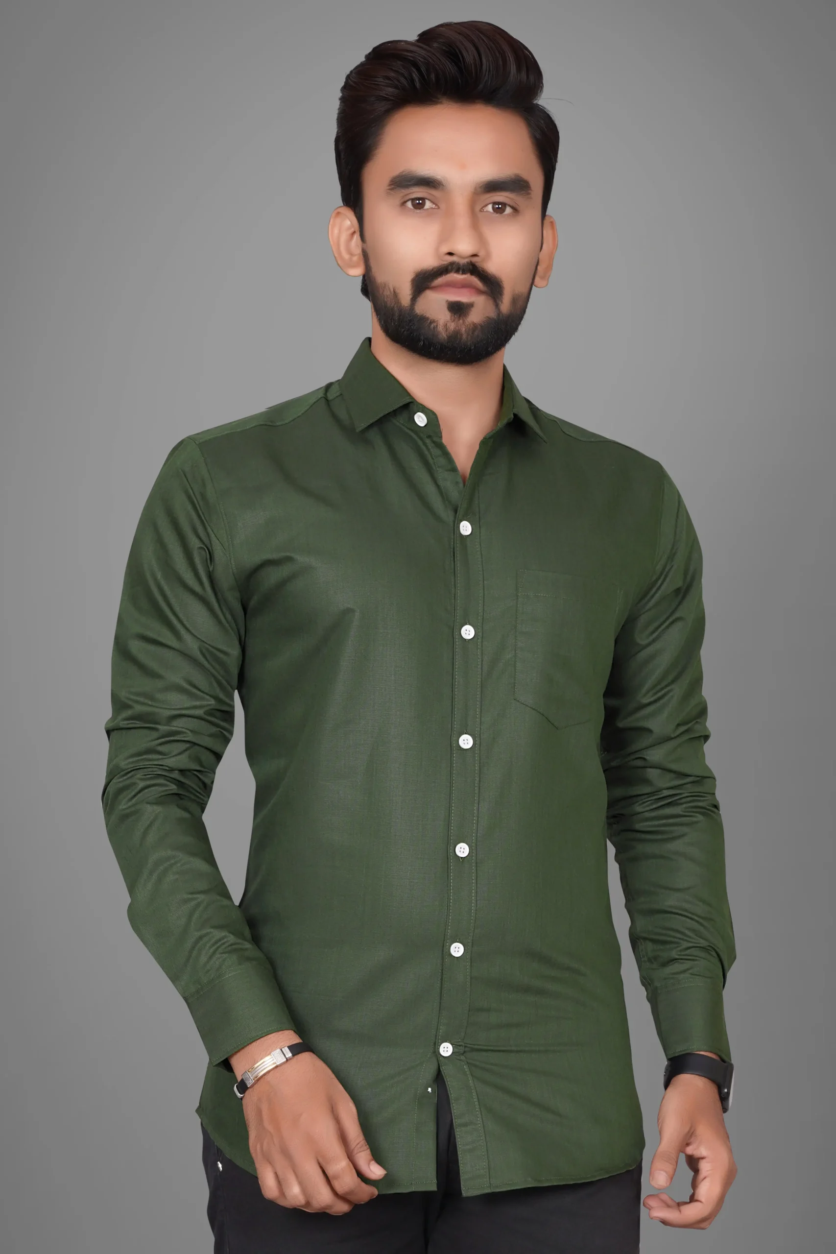 Ye men’s solid olive green shirt premium quality fabric se bana hua hai jo classy aur modern look deta hai. Elegant solid color aur smart fit is shirt ko office wear, casual outings, meetings aur daily wear ke liye perfect banata hai. Soft aur breathable material hone ki wajah se ye shirt poore din comfortable feel deta hai. Olive green color ek trending shade hai jo jeans, chinos aur trousers ke saath easily match ho jata hai.