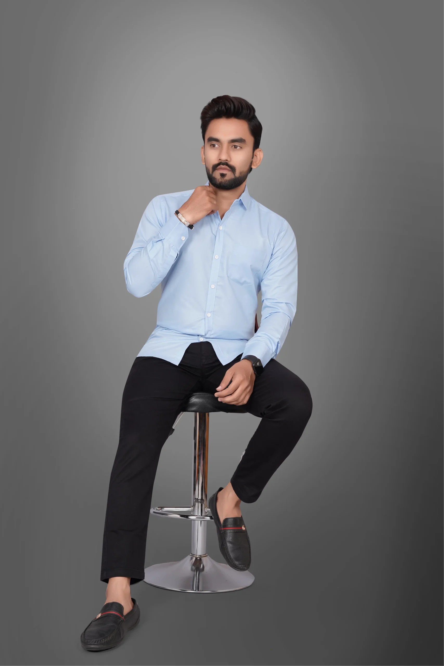 Ye men’s solid light blue shirt premium quality fabric se bana hua hai jo fresh, elegant aur modern look deta hai. Light blue color is shirt ko office wear, meetings, casual outings aur daily wear ke liye perfect banata hai. Soft aur breathable material hone ki wajah se ye shirt poore din comfortable feel deta hai. Clean solid design aur smart fit aapke overall look ko classy aur professional banata hai.