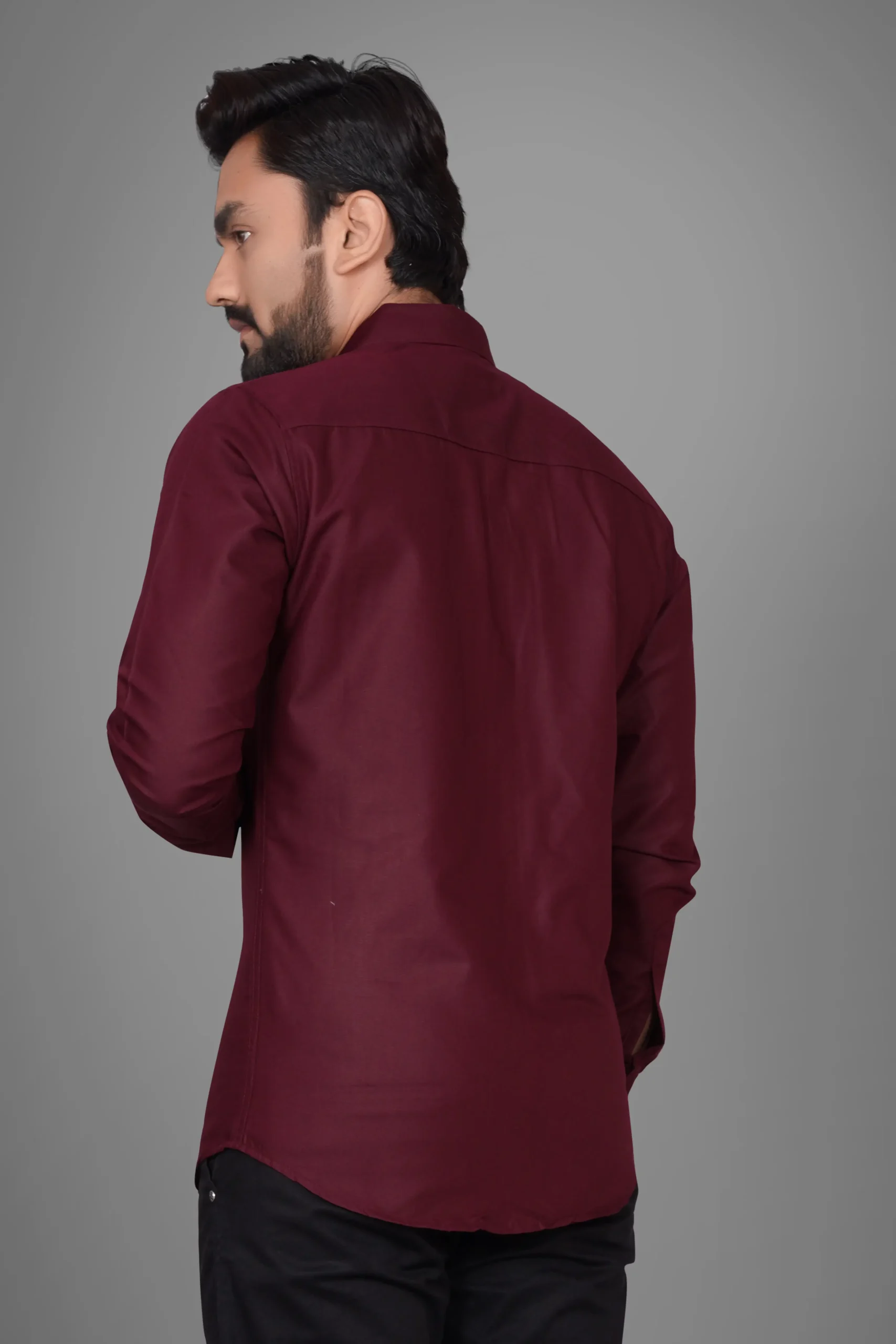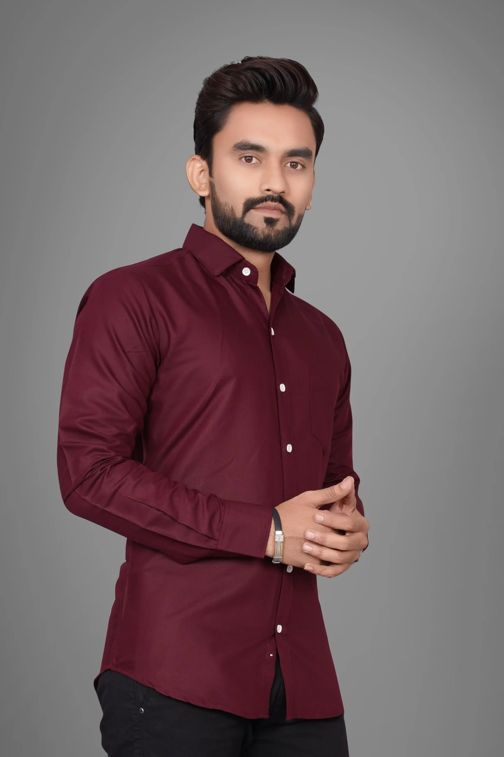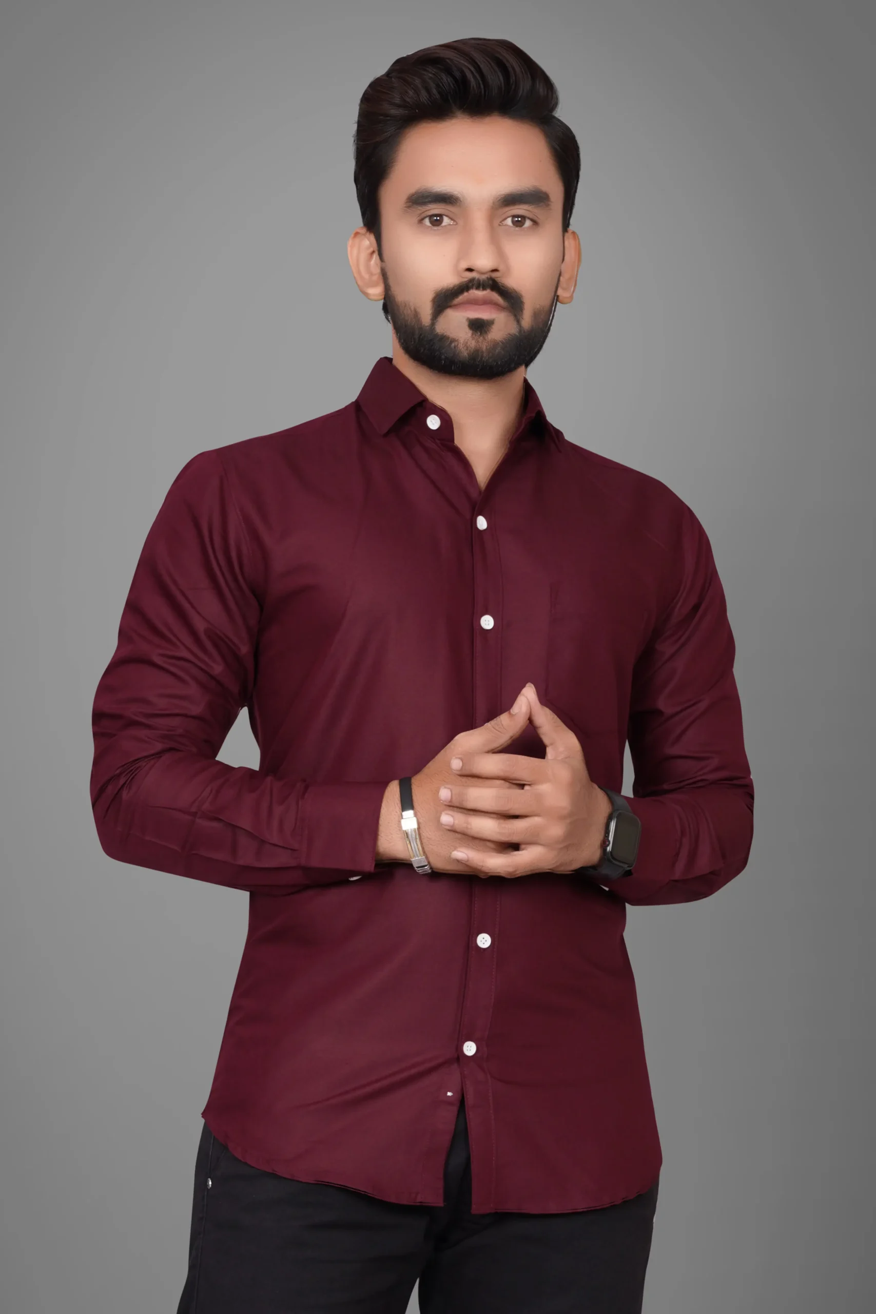 Ye men’s solid maroon shirt ek elegant aur premium look ke liye design ki gayi hai. Rich maroon (wine) color aapke outfit ko classy aur bold touch deta hai. Soft aur breathable fabric ke saath ye shirt all-day comfort provide karti hai. Office wear, casual outings, festive functions aur party occasions ke liye ye ek perfect choice hai. Clean solid pattern aur smart fitting aapke overall look ko confident aur stylish banata hai.