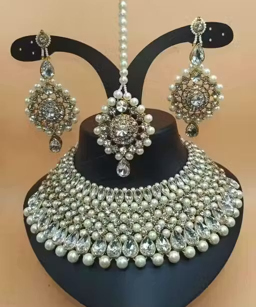 Beautiful Women’s Jewellery Set (Necklace, Earrings & Maangtika)