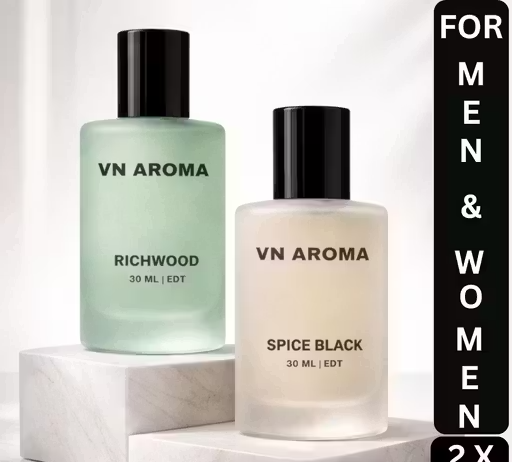 This perfume combo pack includes two distinctive fragrances designed for both men and women. The set features Richwood and Spice Black, offering a balanced combination of woody and spicy scent profiles.