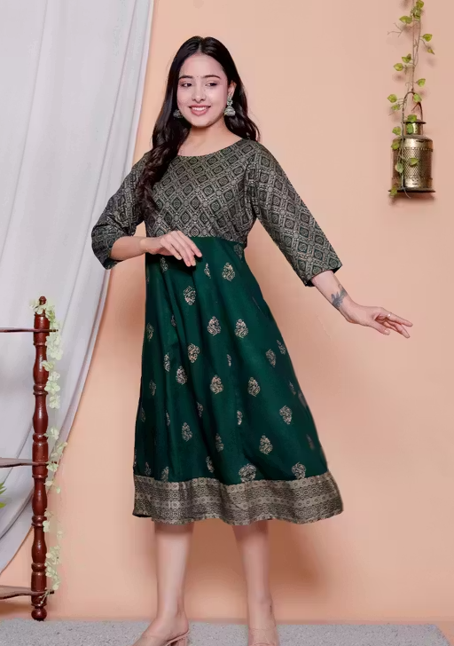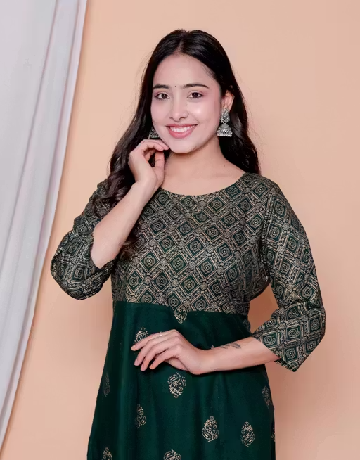 Add a touch of elegance to your wardrobe with this stylish rayon kurti, designed with a beautiful gold print for a charming and premium look. Made from 100% soft and breathable rayon fabric, it ensures comfort throughout the day.