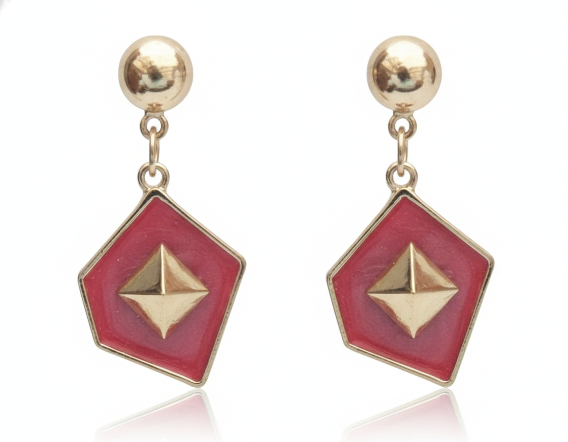 Red Geometric Stone Drop Earrings