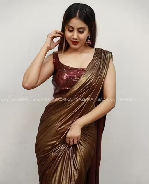 Name: Coffee Lycra Blend Saree With Blouse