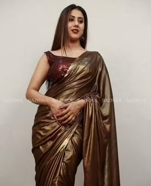Coffee Lycra Blend Saree With Blouse