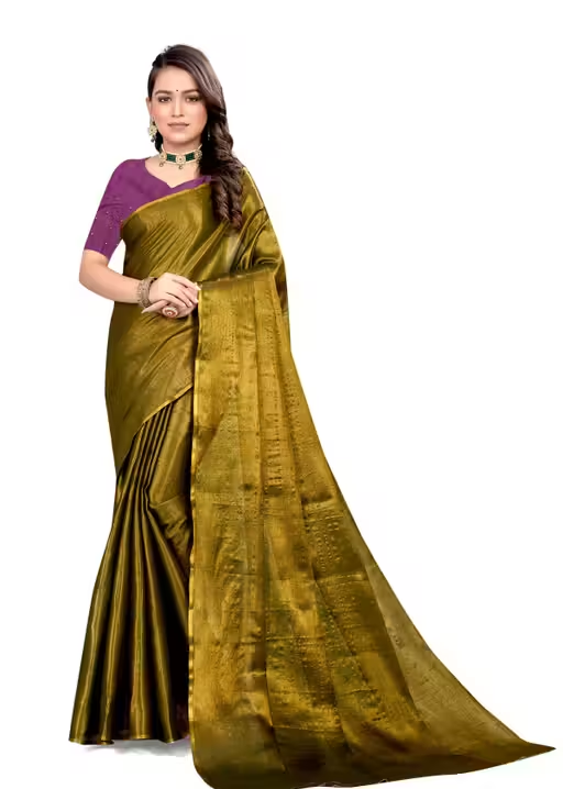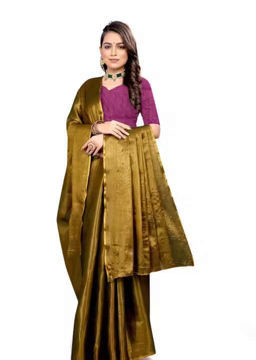 Name: Poly silk Purple Beads & Stones Saree With Blouse