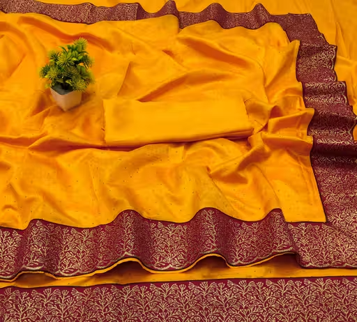 Khushee Creation New kumari silk with lace border with hotfix diamond work with separate blouse pis.